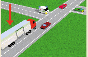You're driving this lorry (arrowed). What should you do about the emergency vehicle that's trying to emerge from the side road?