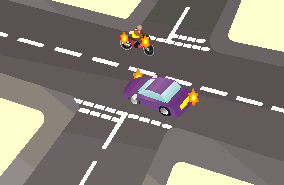You're turning right at this crossroads. The oncoming driver is also turning right. Why is it safer to turn behind the car?